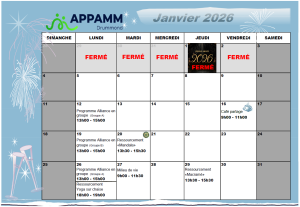 Calendrier de l'APPAMM pour le mois de janvier 2026