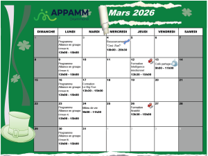 Réservez dès maintenant auprès de Guylaine au 819 478-1216, poste 0, ou par courriel (reception@appamm-drummond.org)