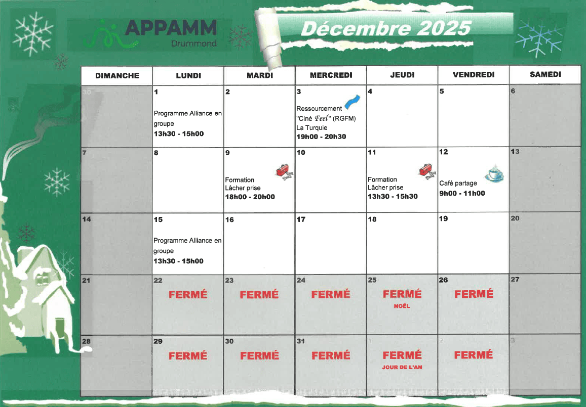 Sauf exception, toutes les activités auront lieu dans nos locaux.